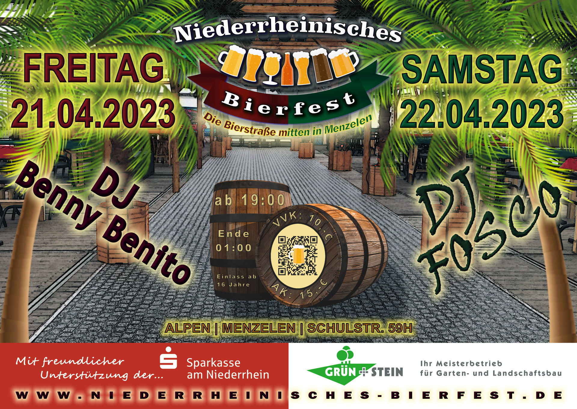 Es ist wieder soweit. Wer kennt sie nicht, die Bierstraße auf der Sommerinsel Mallorca. Sonnenschein, Tanz, Flirt und tolle Stimmung holt der Bürgerschützenverein Menzelenerheide am 21. und 22.04.2023 an den Niederrhein auf den Schützenplatz in Menzelen–West. Bei uns finden Freunde von Bier und Musik im Festzelt alles, was das Herz für eine tolle Party begehrt. Niederrheinisches Bierfest - Die Bierstraße mitten in Menzelen!