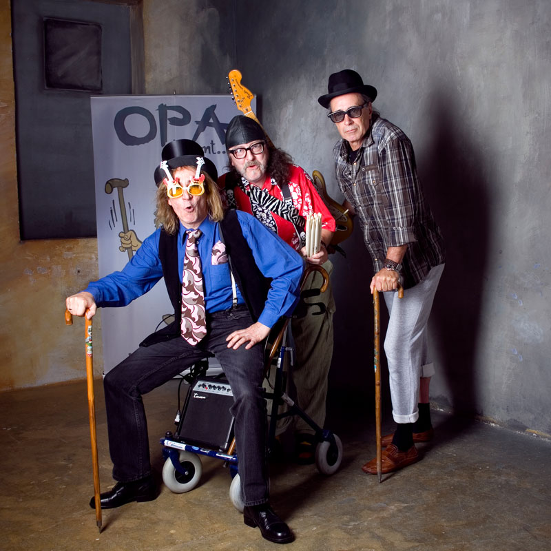„OPA kommt“ spielt in der Trio-Besetzung: Gitarre, Bass und Schlagzeug. Novum: Der Sologesang erfolgt vom Schlagzeug aus.