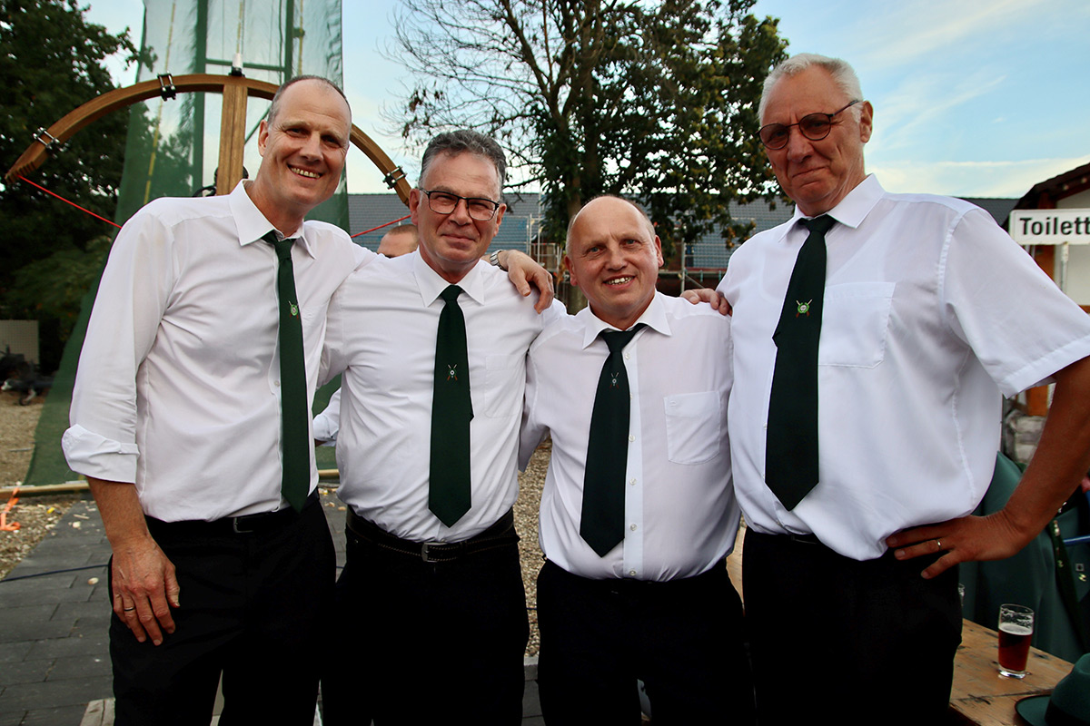 Um 18.15 Uhr forderte Major Marc Hermanns dann die Königsaspiranten auf vorzutreten, um das Königsschießen zu beginnen. Es traten Volker Plegge, Wolfgang Heintz, Peter Giesbers und Dieter Stiers als Aspiranten vor und bekundeten ihren Willen, neuer Schützenkönig werden zu wollen.