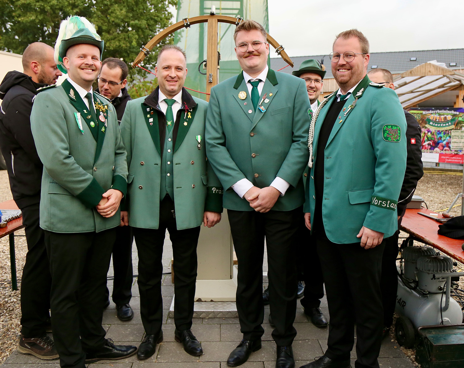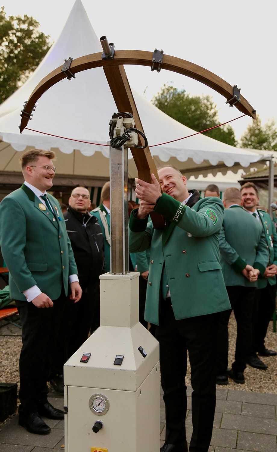 Um 14.30 Uhr trafen sich die Schützen zur Ausgabe der Schießnummern im Festzelt. Dort begrüßte der Präsident Karsten Scholz die angetretenen Schützen, die Spielleute des Spielmannszuges Menzelenerheide und des Musikvereins Menzelen, die geladenen Ehrengäste, die angereisten Mitglieder des Schützenvereines Idar-Oberstein und die Schausteller um Willi Walter.
