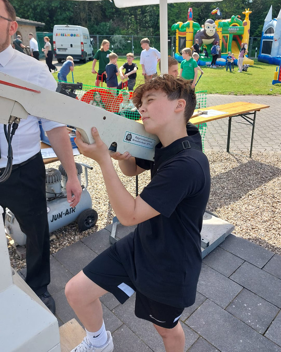 Danach startete dann das tolle Spiel- und Spaßprogramm. Der Sachausschuss „Mach mit“ hatte im Vorfeld mit Unterstützung des Fördervereins des Kindergartens St. Michael ein tolles Programm mit Liebe zum Detail entwickelt. Da das Wetter „mitspielte“, wurden die zahlreichen Spiel- und Kreativstände mit großem Andrang umlagert. Auch das Angebot des Spielmobils des Kreises Wesel wurde ausgiebig genutzt. Am gesamten Festplatz zogen sich drei Hüpfburgen entlang, die für unterschiedliche Altersstufen der Kinder geeignet waren.